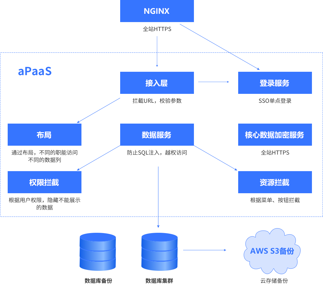 备注:::平台与业务分离,,,,开发运维只运维平台,,,业务专家生成的元数据(表/字段/运行逻辑)+业务数据全部以碎片的方式存储在DB中,,技术人员无法解读,,,,只有业务专家授权后才能导出元数据+业务数据