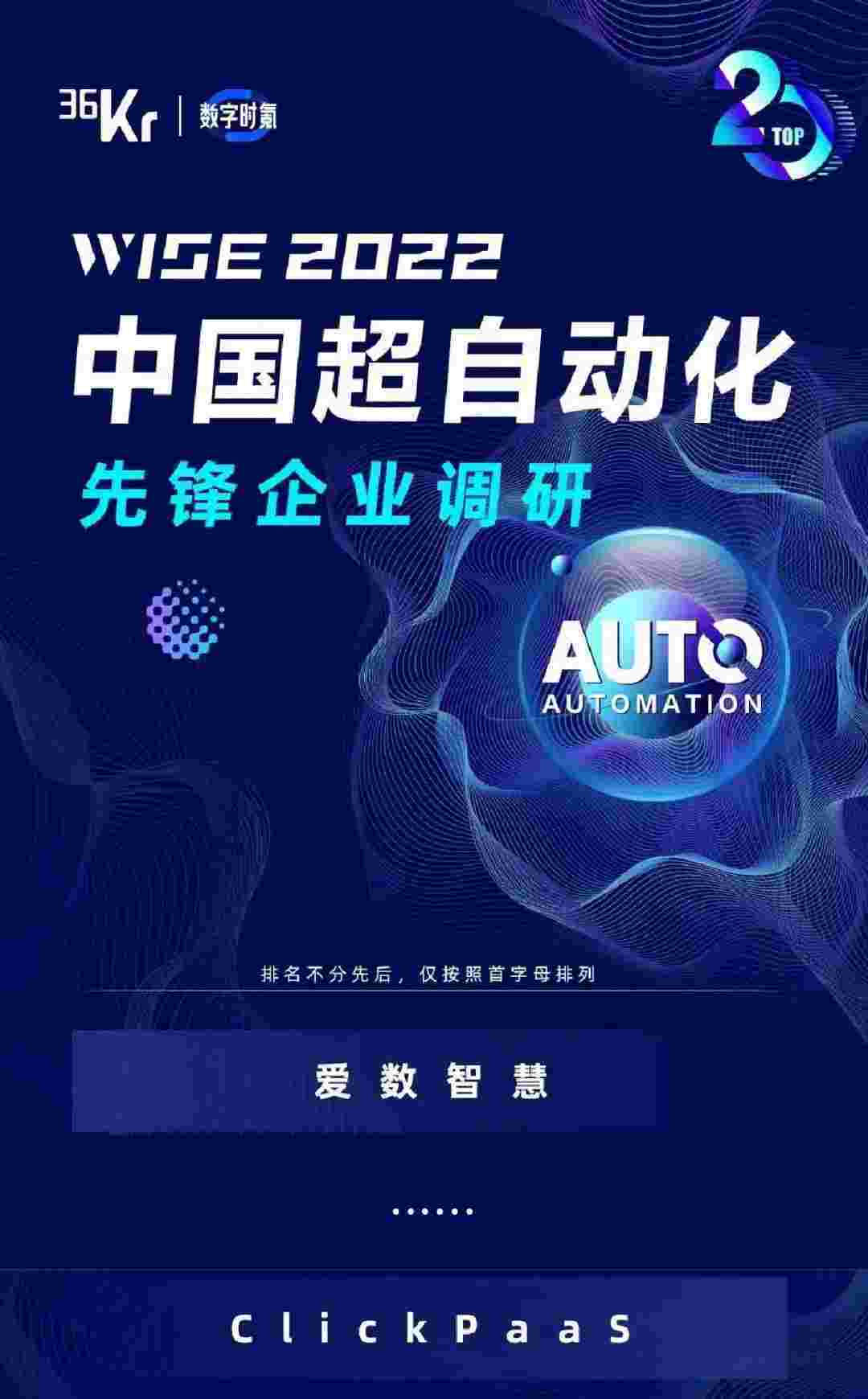 8月10日,,,,由36Kr主办的WISE 2022中国超自动化峰会在杭州成功举办。。美团钱包商家版作为国内低代码PaaS平台的领军企业,,,凭借过硬的技术实力和优质的产品能力,,,在本次峰会中实力入选「2022年中国超自动化先锋企业」20强。。。